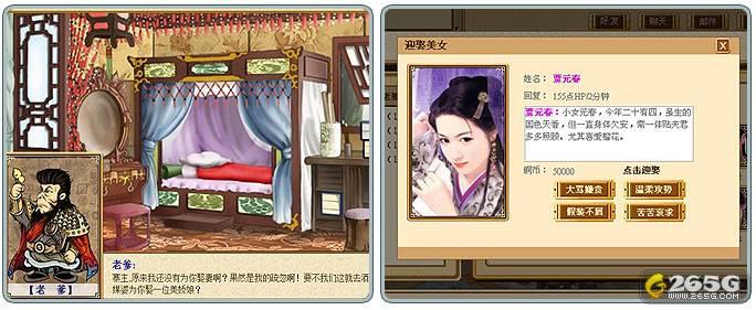 《水浒战略》的游历系统,其实就是一个标准的内置RPG游戏,将领作为RPG主角可以做任务,其战斗模式也是标准的回合制战斗。将领可以在游历中获得经验值、获得装备道具,让将领慢慢成长。这样成长起来的将领可以更好的发挥麾下军队的能力。自身的武将也增加了比较多的游戏性:在家呆腻了能够出去游历一下,在游历可能还会遇到一些稀奇古怪的事情,也可以回山寨修炼自己的实力,也可以训练手下的喽喽们,训练喽喽的画面也比较巧妙的加上了flash动画演示,还算比较独特。武将的娶妻系统也让玩家不再孤单,妻子除了做各种饭菜,履行其义务外,可以让你得到随机的道具并且恢复HP,培养与妻子的好感度还可以增加生育宝宝的几率,历史美女以及各种巧妙的语言对话的结合让游戏具有趣味化和生活化。据说正式公测的版本在娶妻系统上还有更多的完善,希望能够给大家带来更多的乐趣吧