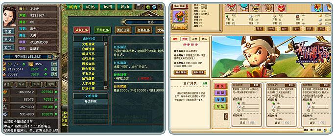 从游戏的内容上来说:三国类游戏大部分在的经济系统设置的比较平衡,粮食,木材,石料,铁锭四项代表了游戏的资源基础,具体数量设置是由玩家决定的。如果有新手玩家初期资源设置的不合理,游戏内的野地采集系统对各项资源都有相应的加成,即使发展错了,也可以通过野地加成来弥补,不会造成游戏中断,使玩家产生出挫折感。但是单一的任务却限制了一部分玩家的游戏热情。历史名将除了攻城,打野地,就只能呆在自己的城里,看的到摸不着。