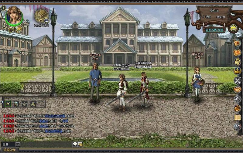 这是游戏的主界面,也是游戏中圣殿城,玩家在这里可以接受NPC任务,并可以在这里得到相应荣誉。作为首款横板策略网页游戏,