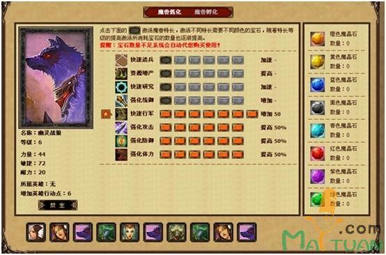 另一个重要问题是关于魔兽BB的特长升级的,主要是需要用一定数量的相应的宝石来激活。8种宝石对应着魔兽BB的8种特长属性。当魔兽的天赋特长属性成长到第6个阶段时,将自动获得额外的系统奖励:第7阶段属性,不过非天赋特长的则没有这个奖励。