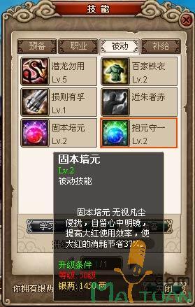 所谓“固本培元”:无视凡尘侵扰,自留心中明镜,提高大红使用效率,会依据不同的技能等级使大红的消耗节省不同的比例。