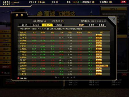 而且全新上线的股票系统,真实模拟了现实大盘!玩家在进入游戏后,无需开户,无需资金,一切只要打开网页,就可买卖,完全成为现实股市的试炼之地。《商战飞黄腾达》让您可以用游戏中“自己公司”的创业或是赢利资金炒到现实中真正的股票。《商战飞黄腾达》完美实现了坐在办公室里同样可以玩游戏,同样可以炒股票,同样可以感受到成功与失败后的酸甜苦辣的梦想,让你娱乐、工作、炒股三不误!