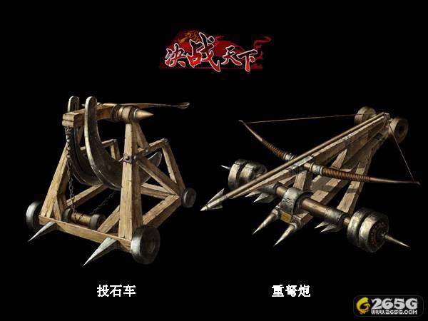 虽然是冷兵器时代,但是投石车和重弩炮在攻城略地中都占发挥着重要作用。在《决战天下》中,投石车和重弩炮对建筑物有着致命的攻击力。攻击的同时带有溅射效果,即可以同时攻击两个目标,其效果为基础攻击的90%和45%。