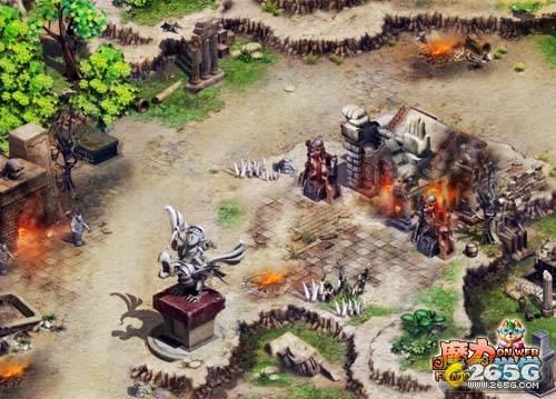 燃烧的伏魔谷一片惨烈之气,依稀可见曾有的繁荣。手持弓箭的飞龙骑士的雕像,在东玄城还有精灵城都有过类似的建筑。这是不是意味着这里也曾是无忧族人建立文明的据点?似乎没有人知道。