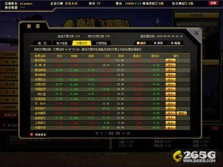 而且全新上线的股票系统,真实模拟了现实大盘!玩家在进入游戏后,无需开户,无需资金,一切只要打开网页,就可买卖,完全成为现实股市的试炼之地。《商战飞黄腾达》让您可以用游戏中“自己公司”的创业或是赢利资金炒到现实中真正的股票。《商战飞黄腾达》完美实现了坐在办公室里同样可以玩游戏,同样可以炒股票,同样可以感受到成功与失败后的酸甜苦辣的梦想,让你娱乐、工作、炒股三不误!