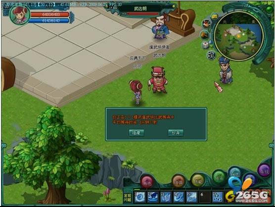 你到达演武场后,再与演武场NPC对话,选择要进行的演武场模式,就可以正式进入演武场排队系统中。系统会自动为你寻找合适的对手,当找到对手后,系统也会以消息提示,这时你只需要点击确定就可以正式进入演武场比武了。