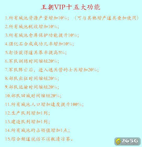 众多玩家在体验了王朝VIP后,纷纷赞叹,总的结论就是:爽!