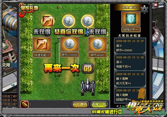 礼炮抽奖备受大家欢迎,因为用一枚小小的礼炮炮弹就有机会抽取RMB也买不到的极品道具。极品威震天坦克、高达数十万的银币、高额经验值、经过强化的技能卡,个个都足以让人羡慕得直流口水。最重要的是,抽奖要用的礼炮炮弹免费就能获得了。
