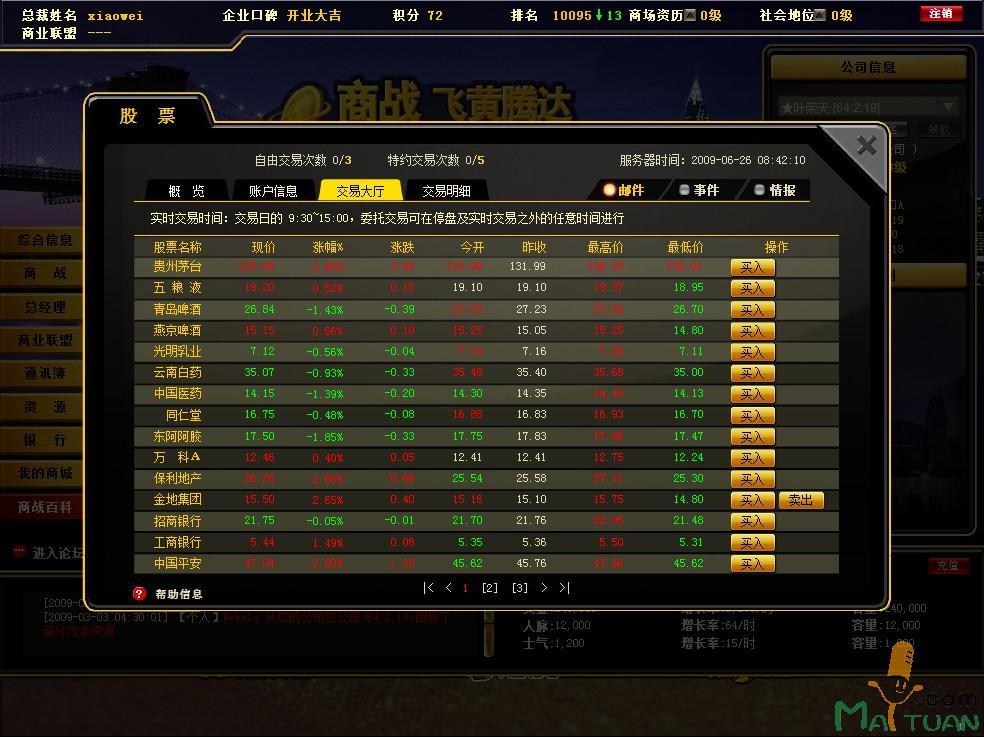 全新股票系统横空出世!《商战飞黄腾达》在参考了大量资料、股票操盘软件、玩家反馈意见之后,一套整合了游戏的乐趣,交织了真实股市的刺激,凝聚了经济社会紧张氛围的股票系统,已经全面上线啦!炒股很难?股市很复杂?《商战飞黄腾达》以化繁为简为目标,以展现真实的股市为己任。特请出股票界专业人士精选了沪、深市A股中的姣姣者作为股票系统的试点内容,力保游戏中的股市精彩而刺激,让您在游戏中毫发无损地体验现实中残酷至极的股票世界!