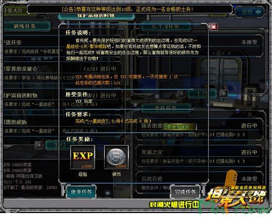 另外,VIP专属类任务是专为VIP玩家准备的,每天能接1次。其他类任务非VIP玩家每天可以接1次,VIP玩家每天可以接2次。成为VIP果然好处多多。
