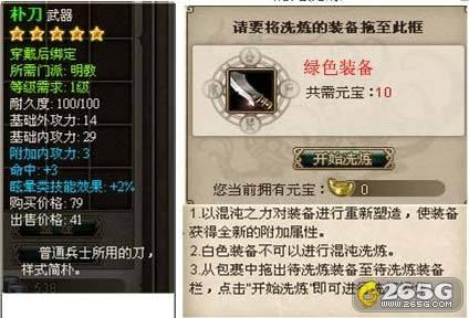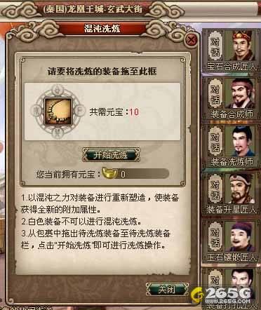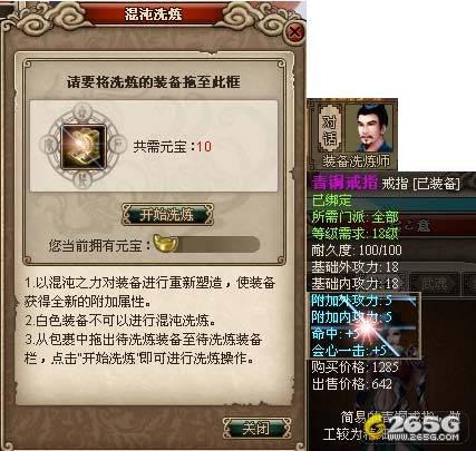 经过了一番谋划,确定先打造一身精良的装备做为PK与国战的优势点!包包里一翻咱好属性的装备还真是寥寥无几,狠狠心,找到基础属性达标的咱跟洗炼师那洗几把,混沌一下去!