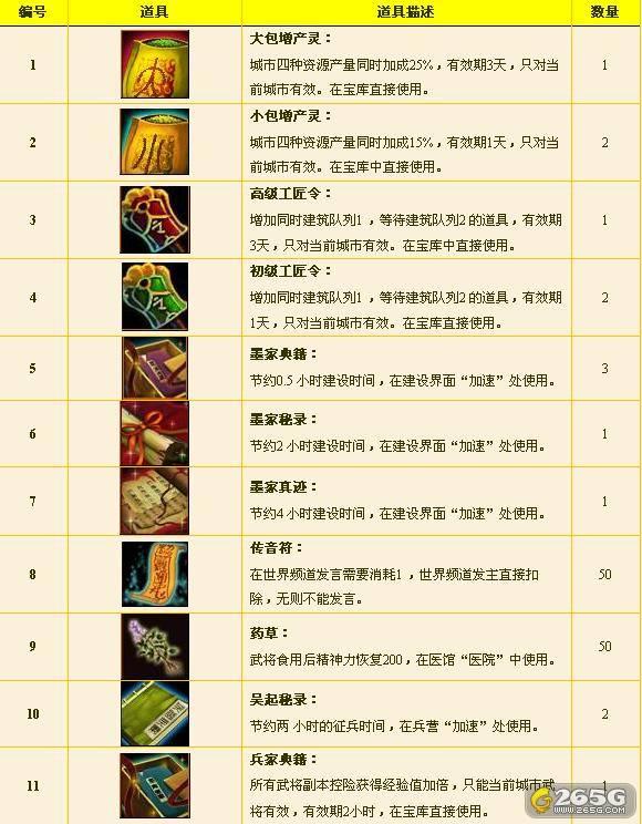将军礼包:当君主声望到10000,爵位为大将军,即可打开将军礼包,可获得各类打造道具,让您所向披靡!