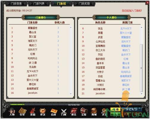门派出战人数越多、获得的战功越多,则门派积分越高。