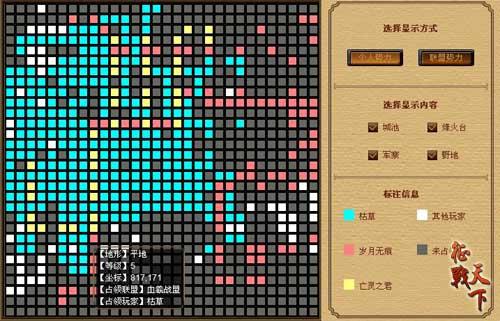 不过,你可别以为势力系统只是搜索查询那么简单,其更强大的功能在于精确定位。你可以悬停任意点获得信息,甚至直接点取任何一个坐标点进入真实野外地图观察。你还可以直接定位指定县的治所县城,为名城攻打名将抓捕创造有利条件。
