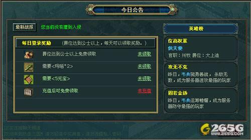 玩家只要达到公士爵位,每天都可以领取四项登陆大奖: