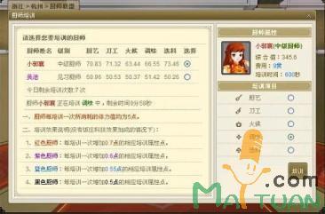 选择好城市之后,一定要先把可能完成的新手任务做完,之后开始做主线任务。游戏中,在出生地的厨师联盟可以进行厨师培训,一天可以进行10次,记得都要培训玩家的主厨,因为有些主线任务,需要做一定属性的菜肴,如果主厨的属性不够,是做不出来足够属性的菜肴,如果遇到和NPC进行PK,属性不够就会输掉。快速完成主线任务又是速度提升威望的方法之一,因此,千万要注意不要把厨师培训方向搞错了。