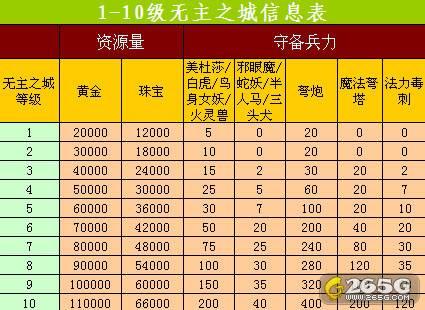 1-10无主之城信息表