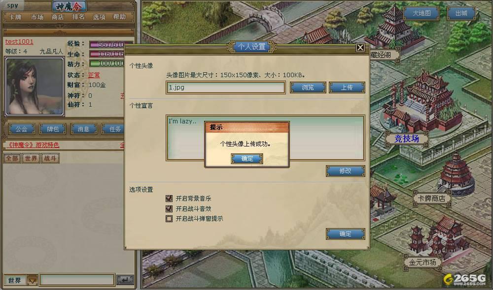 以往的游戏,无论是大型客户端网游,也无论是众多的网页游戏,很多都标榜玩家可以自由搭配、自己设计个人形象,但是归根结底都是在游戏已经设定的范围内来选择,玩家并没有完全的自主权。然《神魔令2》完全实现了玩家的绝对自主,游戏中角色人物头像,你可以自己制作具有独特意义的图片,保存在本地,然后在游戏中设置成具有象征意义的独特身份,《神魔令2》让你玩得就是个性、玩得就是心跳!
