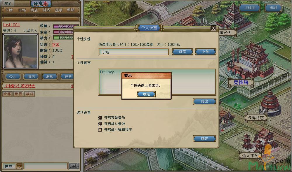 以往的游戏,无论是大型客户端网游,也无论是众多的网页游戏,很多都标榜玩家可以自由搭配、自己设计个人形象,但是归根结底都是在游戏已经设定的范围内来选择,玩家并没有完全的自主权。然《神魔令2》完全实现了玩家的绝对自主,游戏中角色人物头像,你可以自己制作具有独特意义的图片,保存在本地,然后在游戏中设置成具有象征意义的独特身份,《神魔令2》让你玩得就是个性、玩得就是心跳!