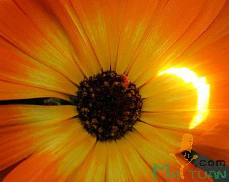 约旦首都安曼,一个花瓣反射出日偏食过程中的太阳。新华社发