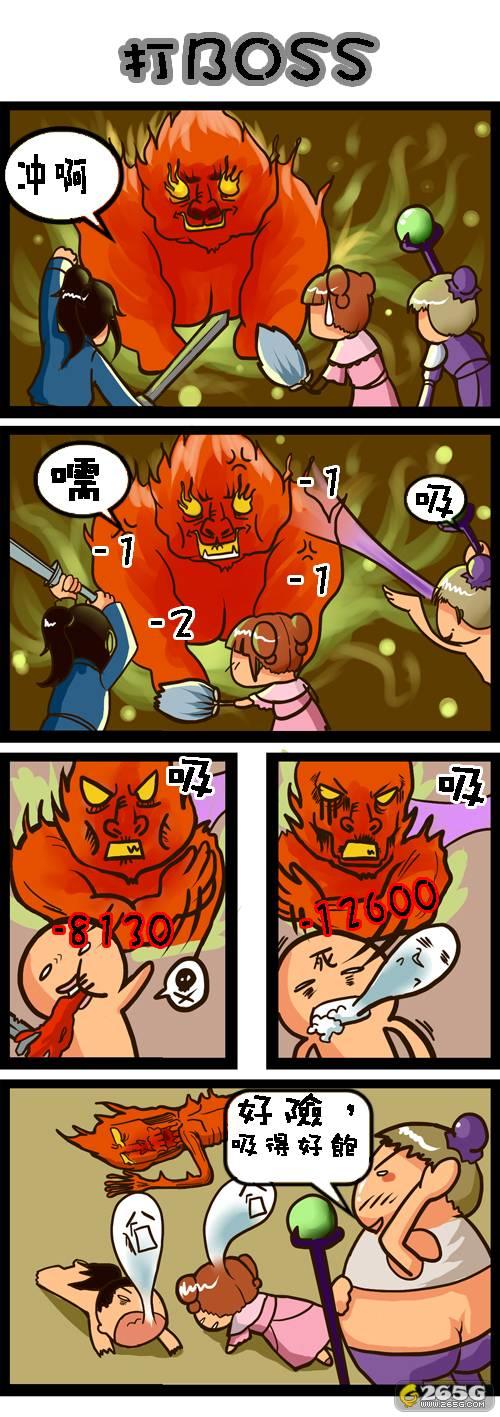 某日,辛辛苦苦杀了无数NPC的四人组合终于来到BOSS面前,于是其中一猛男兄当先展开吸收技,口种大骂:“我吸!”BOSS不理,随手放倒一人,猛男仍不放弃,继续狂吸,BOSS继续不理,将另外两人放倒,猛男拼命,大喝“我吸!”,BOSS顿时愕然而倒,猛男大喜,口中念念有词:“我就不信吸不S你丫的”自此之后此人之名在BOSS界声名鹊起,人称“BOSS必吸之神”