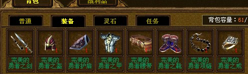 勇者套装:(无等级限制)只有勇者才可以装备上,是勇气的象征。