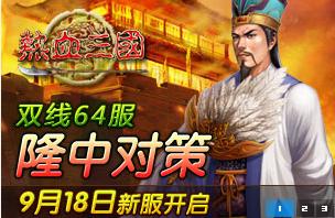 4399《热血三国》强势再开新章,九月1.20新版“剑啸洛阳”隆重登场。正式开放包括成就系统、联盟领土、俘虏系统……等十数个全新系统。为迎接新版本的上线,4399《热血三国》双线六十四服【隆中对策】于2009年9月18日13:00火爆开服!全新的内容,全新的期待。为满足玩家对于新版本的好奇和期待,帮助大家在新服快速发展,现特别在新服推出优惠活动,奖励多多,精彩不断,大家不要错过哦!第一时间加入我们的新服,让你成为真正的英雄。