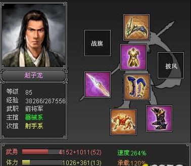 所谓“术业有专攻”,我们的武将也不例外。在游戏中,每个武将都有自己的主擅兵种、次擅兵种和不擅长的兵种。为武将配上他的主擅兵种,在战斗中可以获得100%的加成;如果统帅的是其次擅兵种,那么效果减半,即只有50%的加成;至于不擅长兵种,那就只剩下25%的加成了。
