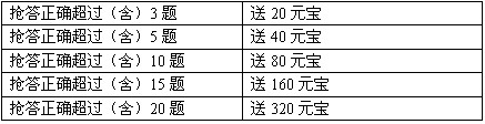3、抢答正确总体数达到一定数量,还会有额外奖励元宝哦!