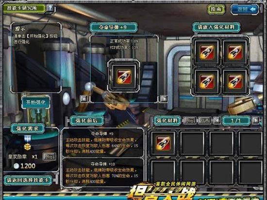 坦克换代之后属性会大幅度的提升,谁不想拥有一个更加强大的坦克?不过前途是光明滴,道路是曲折滴,坦克换代成功是有一定几率滴。虽然有可能失败,但是看看人家坦克换代后那霸道的实力,啥也不说了,心里默默的祈祷一遍,然后小心翼翼的点击“坦克换代”吧!