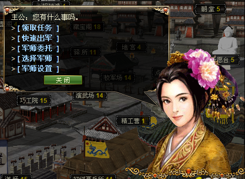 军师系统在"城内"右下角有个美女头像的小图标,点击可以进入功能界面,如下图