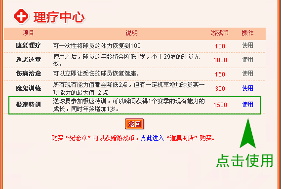 注1:极速特训只有职业队球员才能使用;