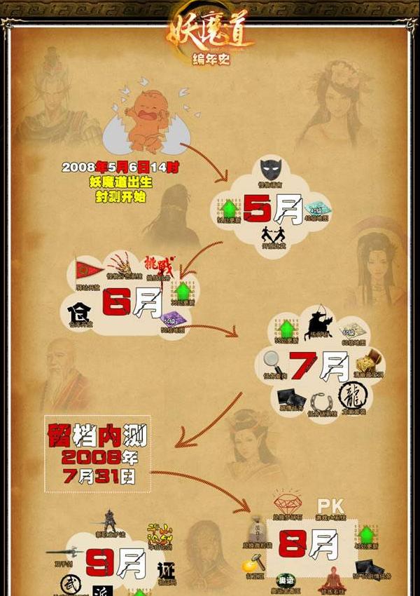 自2008年5月推出以来,便以中华民族传统风格的画面以及丰富多彩的玩家吸引了广大的玩家。他的出现,不仅填补了国内网页游戏市场上的空白,而且在WebGame市场上大放异彩,创造了一个又一个的奇迹。在成长历程的展板上,我们可以清晰的看到这款游戏前进的脚步: