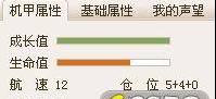 机甲属性:显示玩家当前成长值、生命值、航速、舱位、攻击力、防御力。