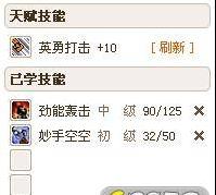 6. 角色技能面板:显示天赋技能;已学技能。