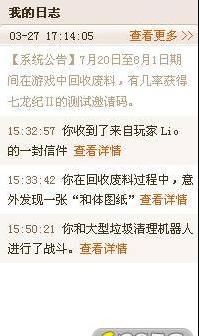 7. 公告及角色日志:显示包括系统公告,玩家信件,战斗信息,交易信息等玩家在游戏世界中最近发生的重要事件。