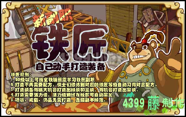全新副职铁匠上线,赶快去找玄铁铺熊震看看吧。