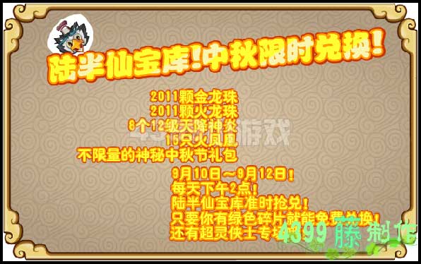 等什么,9月10日~9月12日每天下午2点在陆半仙宝库准时抢兑,只要你有卡牌,只要你有绿色碎片就能免费兑换。还有超灵侠士专场哦!