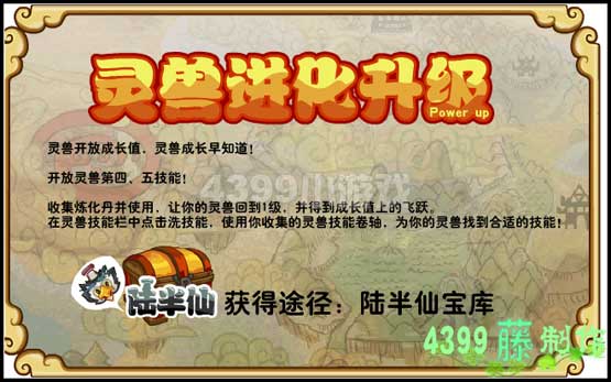 炼化丹和灵兽技能卷轴获得途径:陆半仙宝库,后续在副本、活动、变坏的灵兽身上中也都会出现哦!