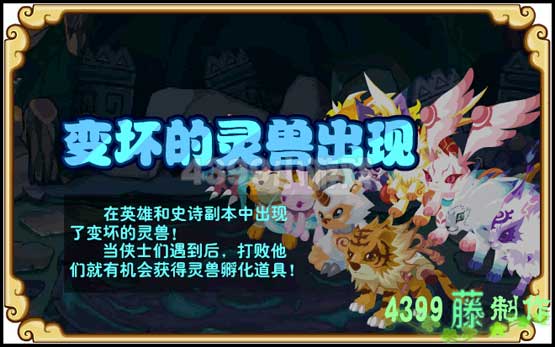 在英雄和史诗副本中居然出现了变坏的灵兽,侠士们如果遇到,就赶快拯救他们吧,打败就有机会获得灵兽孵化道具!
