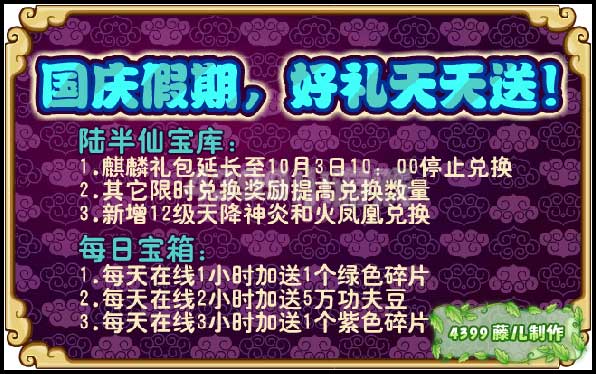 3.每天在线3小时加送1个紫色碎片