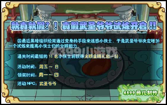 2、谁是火眼金睛?真假武圣爷爷试炼开启!