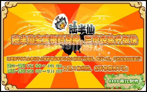 3、陆半仙宝库限时兑换,三倍经验升级快