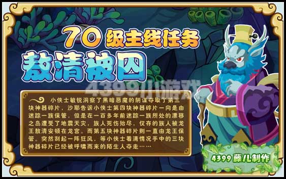 小侠士敏锐洞察了黑暗恶魔的阴谋夺取了第三块神器碎片,沙耶告诉小侠士第四块神器碎片一向是由迷踪一族保管,但是在一百多年前迷踪一族所处的漂移之岛遭受了地震天灾,族人死伤殆尽,仅存的族人被龙王敖清安顿在龙宫。而第五块神器碎片则一直由龙王保管。突然刮起一阵狂风,等小侠士看清情况手中的三块神器碎片已经被呼啸而来的陌生人夺走……