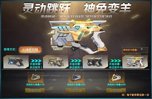①在火线研究院完成挑战后,即可在“奖励”界面领取奖励,获得配件碎片。