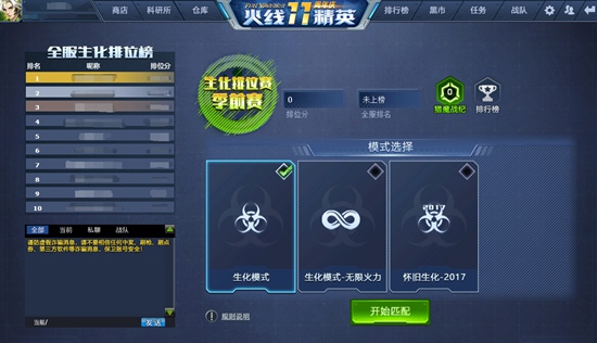 2.【模式范围】生化模式、生化模式-无限火力、怀旧生化-2017