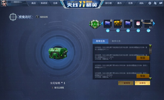 ②界面右下方显示当前可完成的“周常任务”、“赛季任务”。