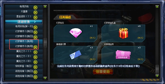 本次更新后,任务列表的幻梦钻任务奖励将金币翻倍券替换为奖章增益券。