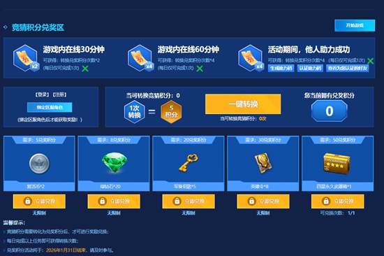 参与方式:在赛事专题页对支持的参赛队伍进行竞猜,每参与一场对决竞猜,该场次积分池将增加10点竞猜积分;竞猜成功(所选队伍晋级)的玩家,可平分该场对决的总竞猜积分。积分可在兑奖专区兑奖。
