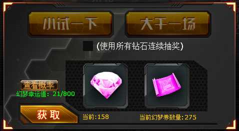 ①拥有梦幻钻石后可以选择“小试一下”或者“大干一场”。小试一下消耗的幻梦钻石数量最少。